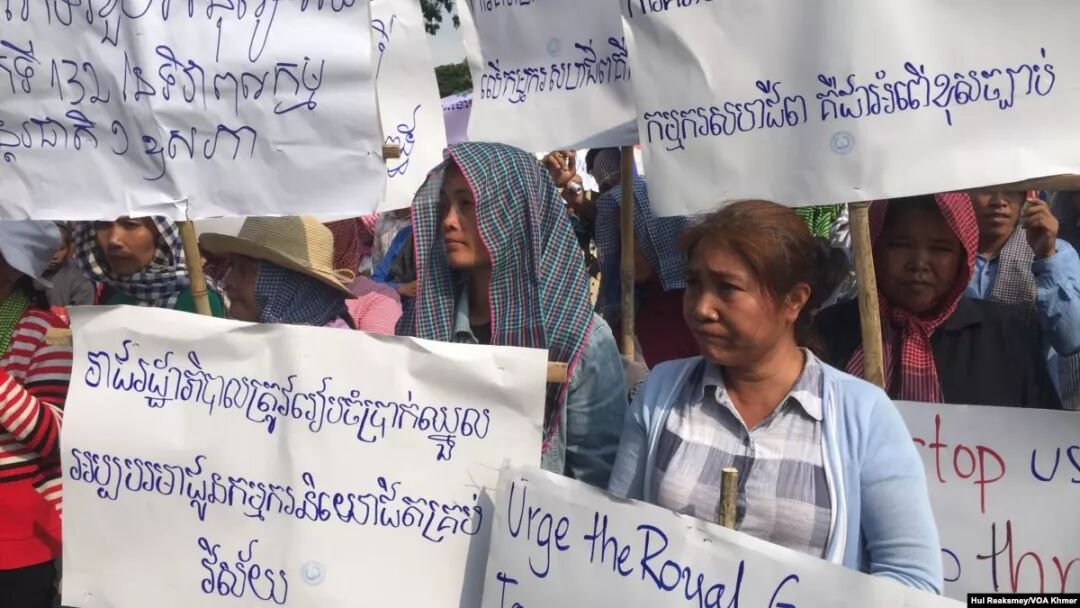 28岁的代表Pov Lina表示,她们的工厂已于9月初关闭,但是老板没有按照劳动法的要求对他们进行赔偿。
