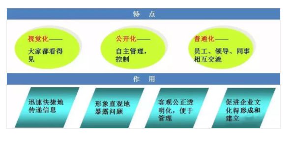 意义:把工厂中潜在的问题暴露出来,让任何人一看就知道异常情形的所在。
