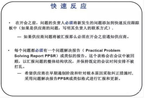 目的意义:标准化的应对重大的内/外部质量问题的反应流程;通过例会加强沟